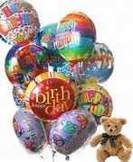 Birthday Bouquet !Wishing you health, happiness and love on your special day and always! Have a wonderful Birthday! Product: 10 latex birthday balloon with 9" teddy bear. |