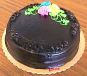 Chocolate CakeTwo (2) layers of chocolate cake with caramel filling, iced with chocolate frosting. |