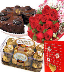 love uA delightful living gift suitable for any occasion 16 pieces ferrero chocolate feelings with chocolate cake & 12 red roses bunch type express your love, a perfect gift to express your emotions. |