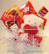 Chocolate Basket-139" teddy bear with 10 item chocolate Mix an adorable gift for your loved ones. |