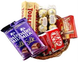 Chocolate Hamper - 13Cadbury DairyMilk SILK Choc Bars - 2 ,65 gm eachToblerOne Chocolates - 300 gms Ferrero Rocher - 6 pcs KitKat Chocolates - 3 Nos |