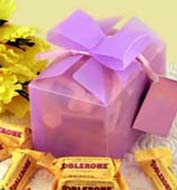 Gift Shop Cafe exclusive 25 pieces Toblerone Chocolate Mini bars, in a Lavender Reuseable Polypro Gift Box. Net weight is 12.7oz or 360g.