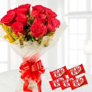 12 Red Roses Bunch - 5 Nestle KitKatNo Product Detail Available |