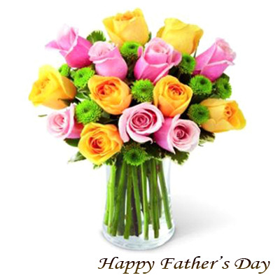 Expressions of JoyArrangement of 12 yellow roses and 12 pink roses in a glass vase |