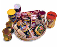 Gift basket 06Pasalubong Grande ,Double the goodness, and share with more friends and family.Grande’s basket of goodies: two Hormel Spam Luncheon Meat, two Del monte Fruit Cocktail Underwood Roast Beef, Nestea Iced Tea mix, Del Monte peach halves, Nnestle’s Baby Ruth Chocolate Bars, Sunkist Pistachio Nuts, Coffee Mate Creamer, Planters Dry Honey Roasted Peanuts, Planters Cheese Curls, Leah & Perrins Steak Sauce, Del Monte Spaghetti Sauce, Golden Grain Lasagna. |