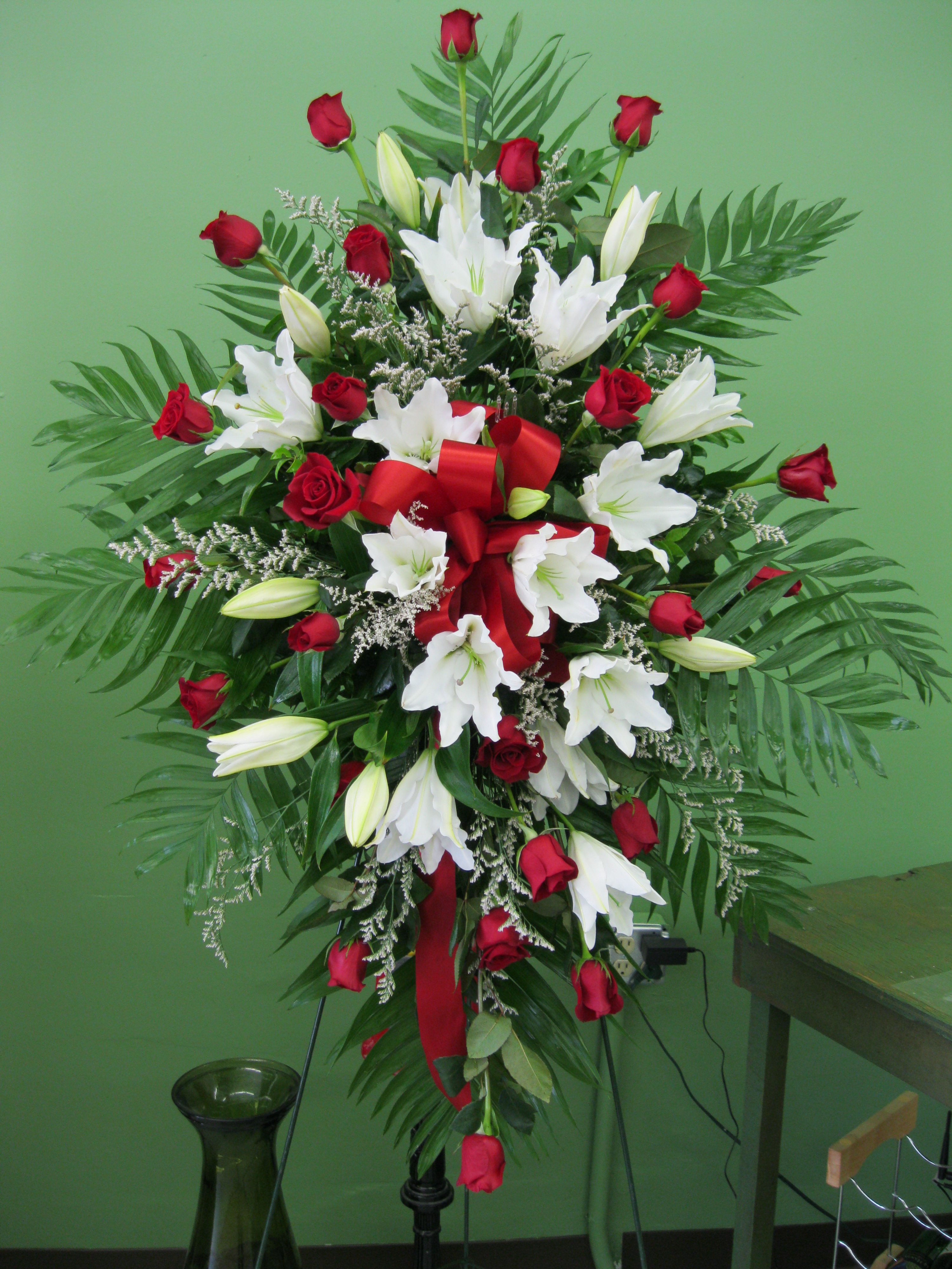 White lily & red rose sympathy