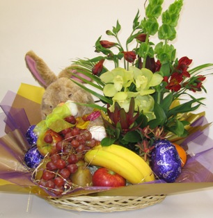 The perfect choice! - This Gift Basket is filled with 6 items fresh fruit, flowers and a few chocolate for them to enjoy. The best of both worlds.