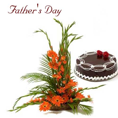The Blooming BasketsBasket arrangement of 12 gerberas with chocolate cake. |