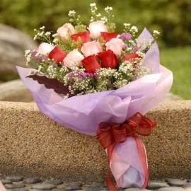 6 Red 6 Peach Roses Hand Bouquet
