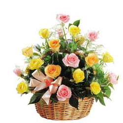When we have a dream, we wish to have a golden dream. Two dozens elegant pink and yellow roses come together with field of delicate baby's breath on plumose greenery, and the result is, a gorgeous display of golden beauty. A great way to show passion and what we really like to say.